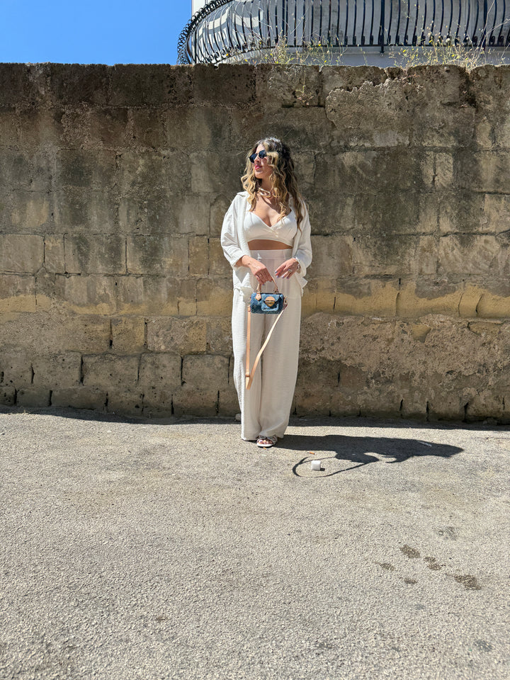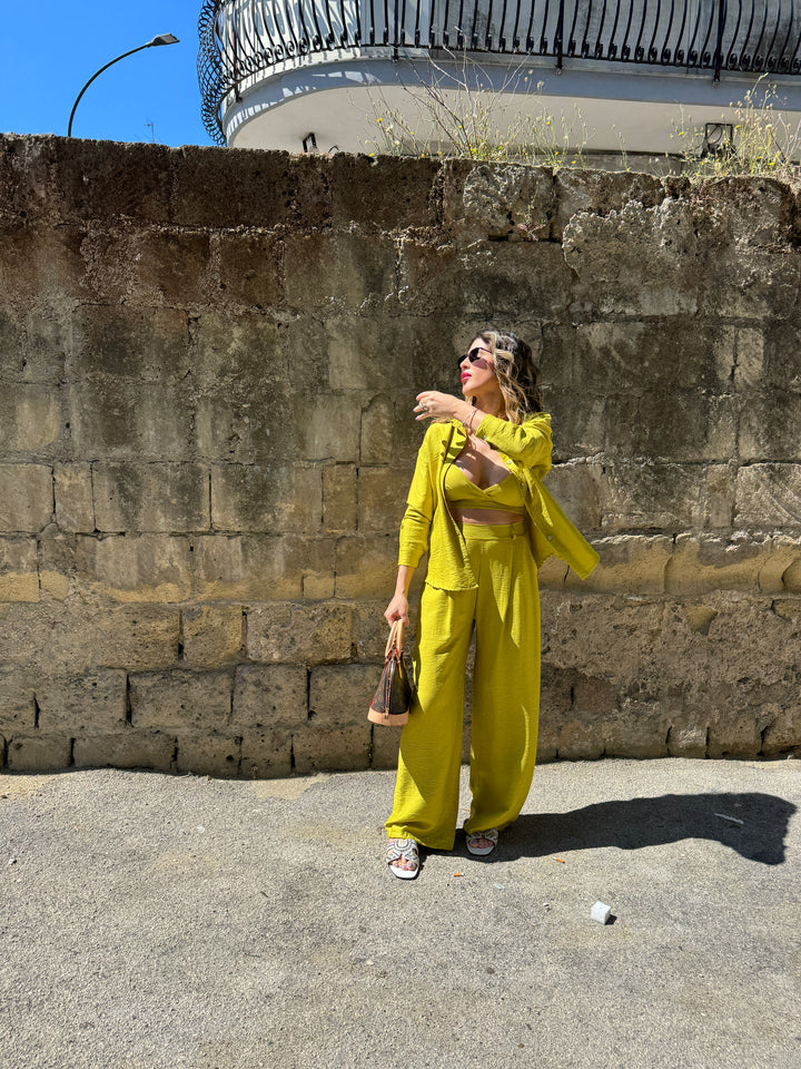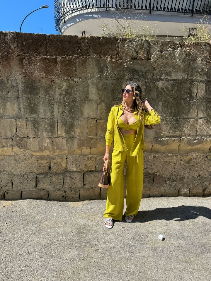 Esalta il tuo stile con il Coordinato Colors, che comprende una camicia, dei pantaloni e un top coordinati. Combinando questi tre elementi, potrai creare outfit eleganti e alla moda per ogni occasione. Grazie alla perfetta coordinazione dei colori, non dovrai più preoccuparti di abbinamenti sbagliati e potrai sempre apparire impeccabile e sicuro di te.