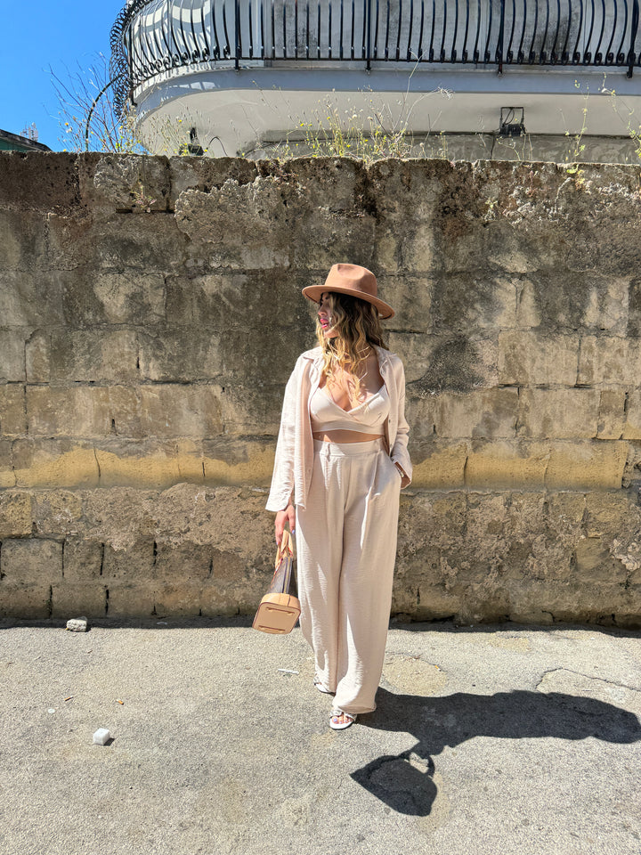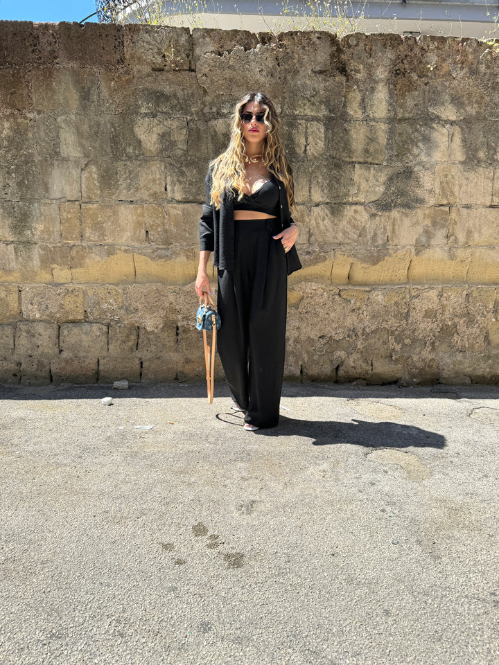 - Descrizione: taglia unica set 3 pezzi top camicia e pantaloni camicia modello morbido top con bretelline regolabili elastico pantaloni con elastico in vita