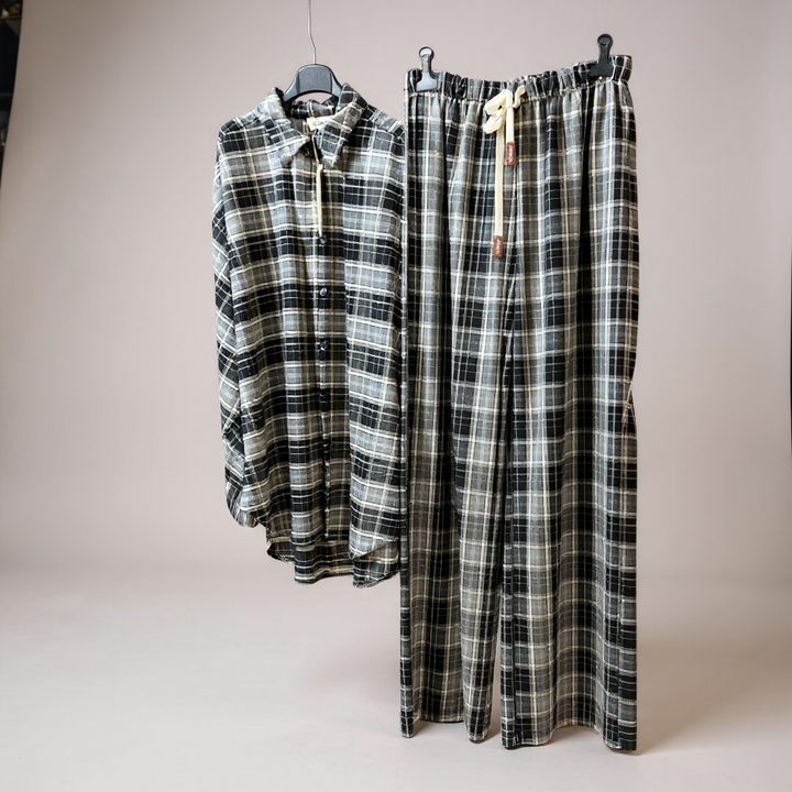 - Descrizione: taglia unica in tessuto caldissimo cotone e flanellina pantaloni con laccio ed elastico in vita modello ampio veste fino ad una 46