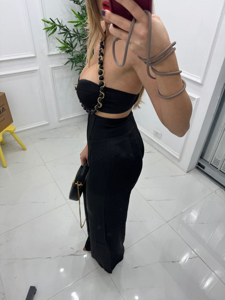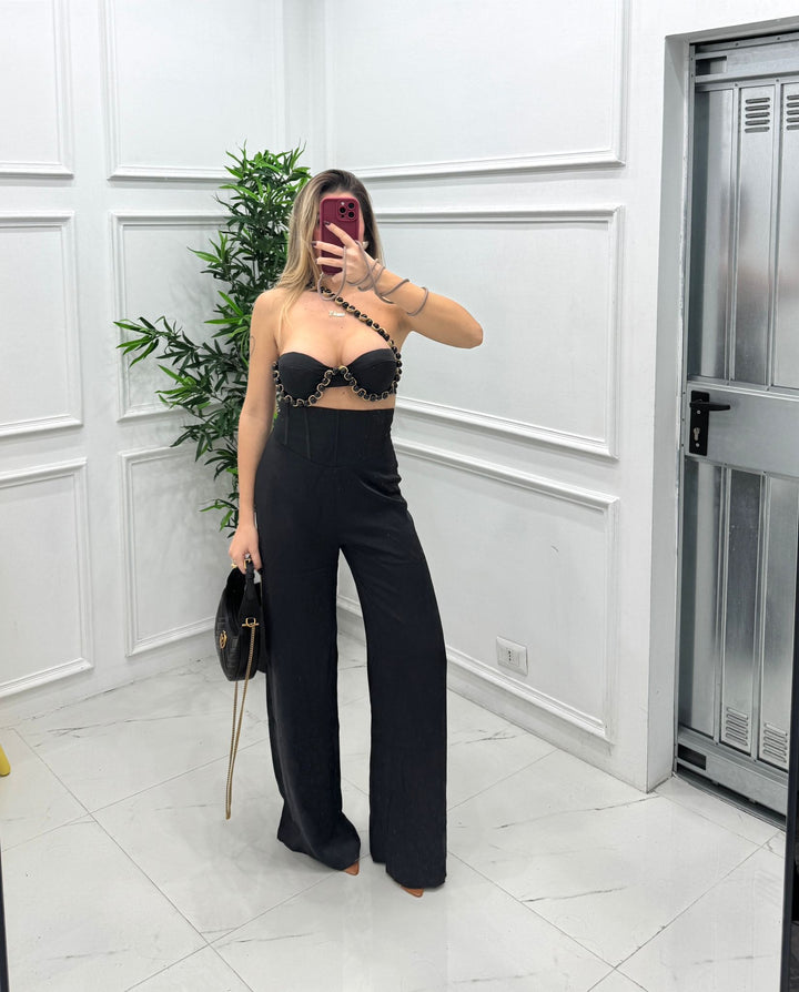 - Descrizione: coordset 2 pezzi pantaloni leggermente elastico con bustino vita alta con cerniera sul retro top con perle prodotto fatto veramente bene veste regolare Grazia è alta 1,66cmt x 55kg ed indossa la taglia S