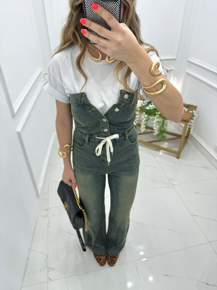 - Descrizione: denim fisso abbottonatura e laccio avanti
