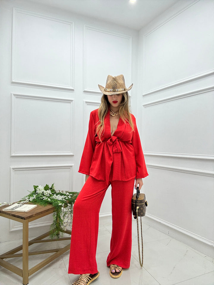 - Descrizione: taglia unica giacca nodello morbido con cintura pantaloni con elastico in vita a gamba a larga