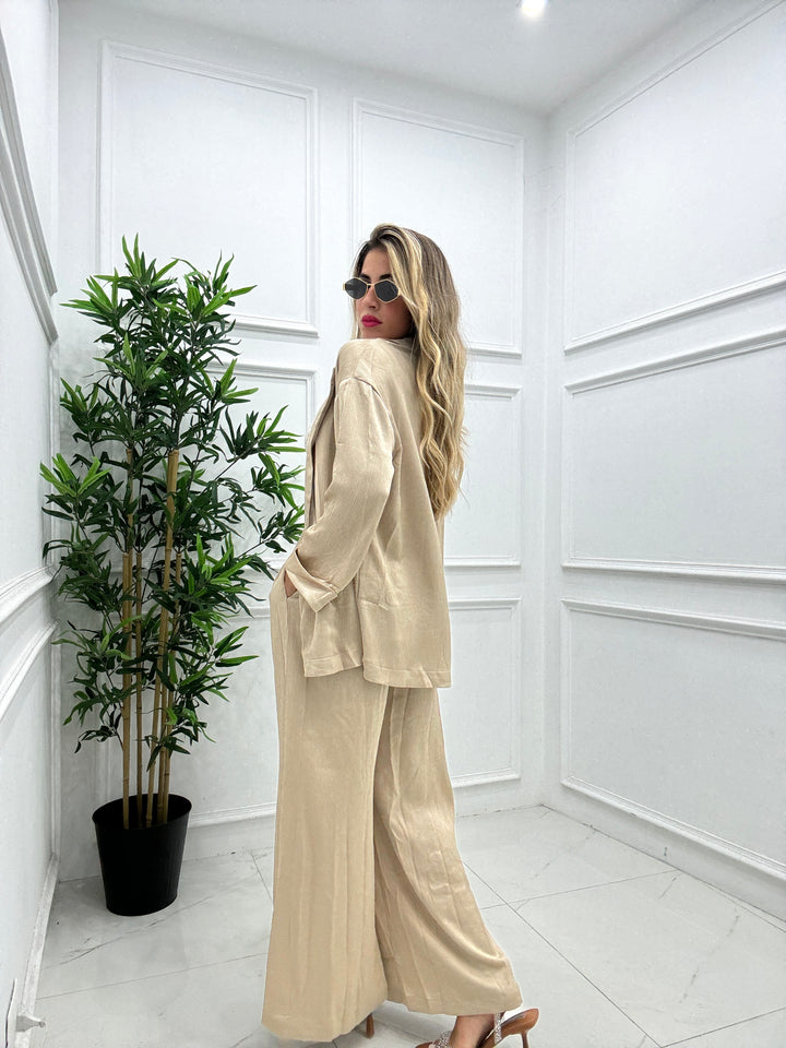 L'esclusivo tailleur Madagascar è perfetto per le donne moderne che desiderano uno stile unico. La giacca e i pantaloni color oro antico aggiungono un tocco di eleganza senza tempo. Rilassati e lasciati conquistare dalla morbidezza dei tessuti e dalla vestibilità perfetta di questo capo.