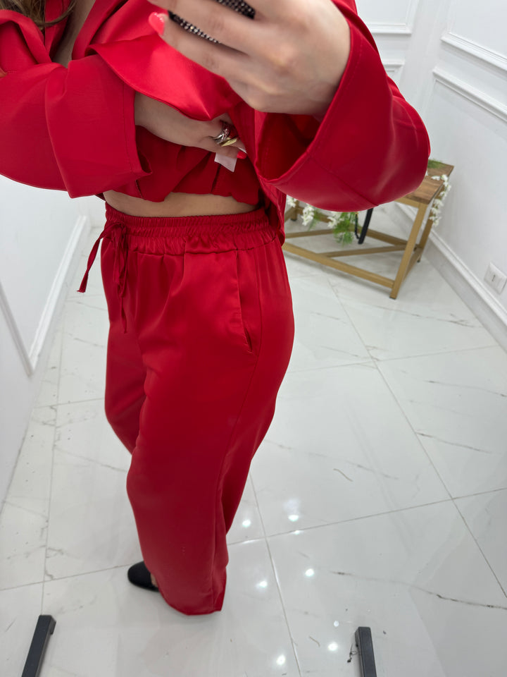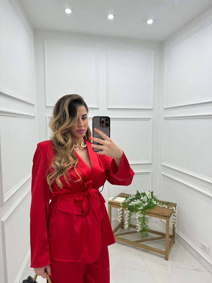 Esaltate la vostra bellezza con il Tailleur Passione, un elegante tailleur rosso lucido che vi farà risplendere. Realizzato con cura e attenzione ai dettagli, questo capo è perfetto per chi ama essere sempre al top della moda senza rinunciare alla comodità. Il tailleur lucido aggiunge un tocco di eleganza e femminilità al vostro look.